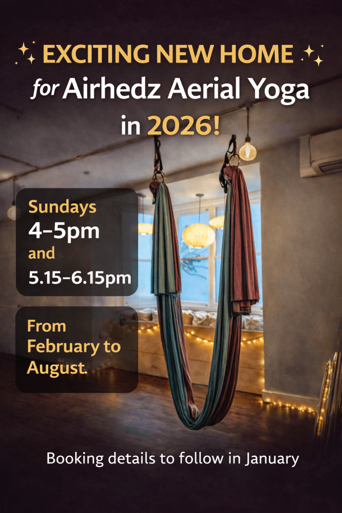 | Thank you for visiting. I am VERY excited to be starting a new Aerial Yoga adventure in Whitstable in February 2026. Details are still being ironed out, with a new booking & payment system to come online in January. There will be classes dedicated to my regular Airhedz Aerial Yogis, and of course space for newcomers. I will also set up new Taster Sessions later in the year. So do sign up to the Newsletter below, to be the first to know what’s happening. Merry Christmas to you all, and see you in the New Year! Tina |